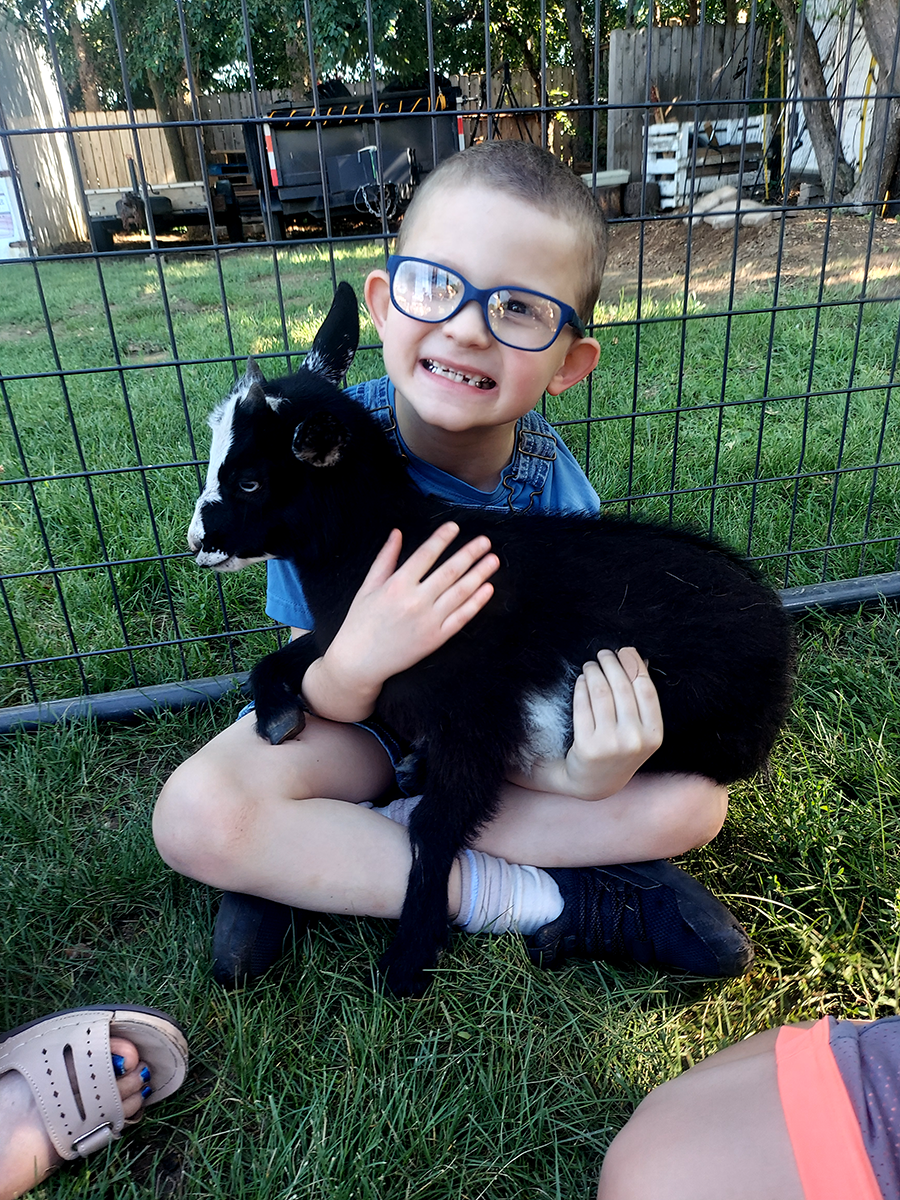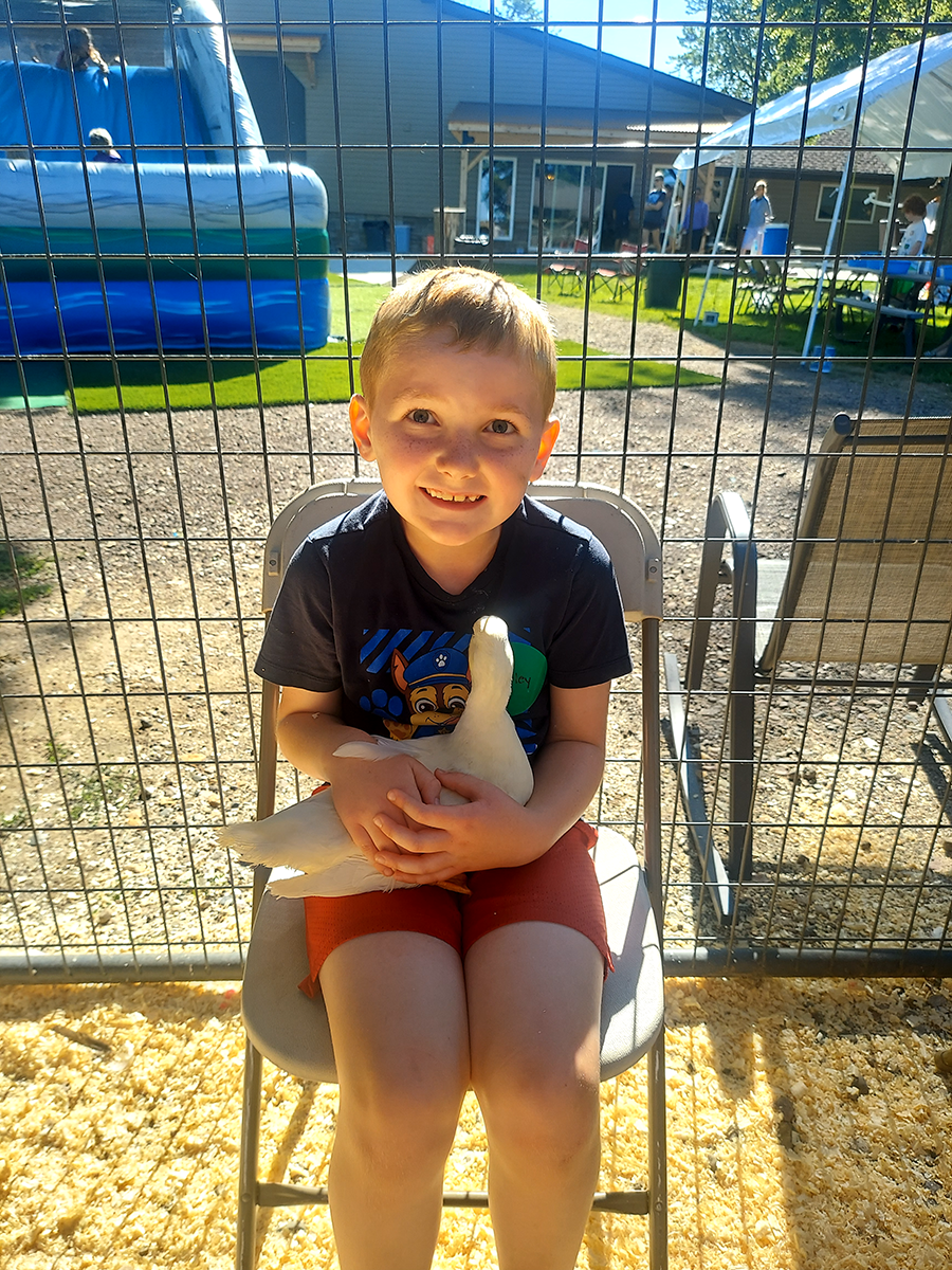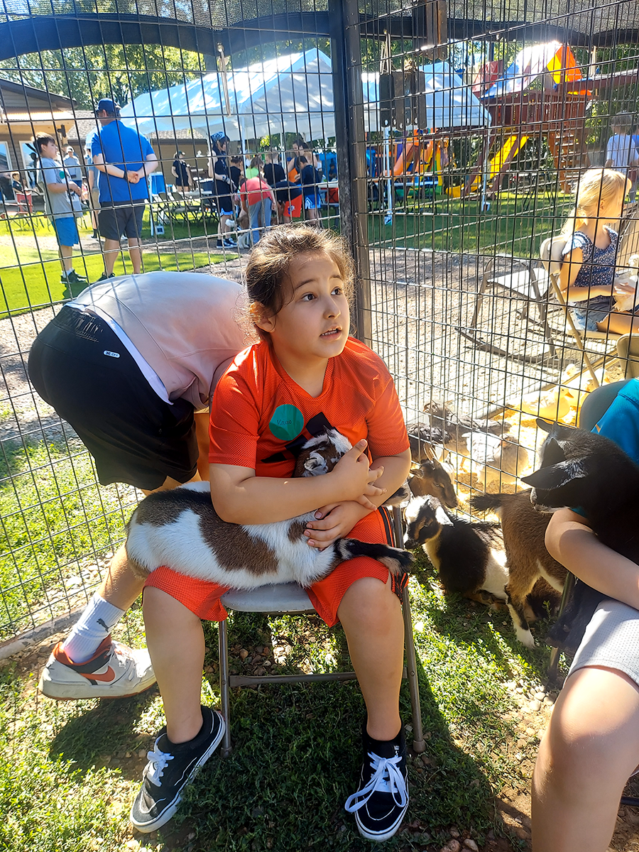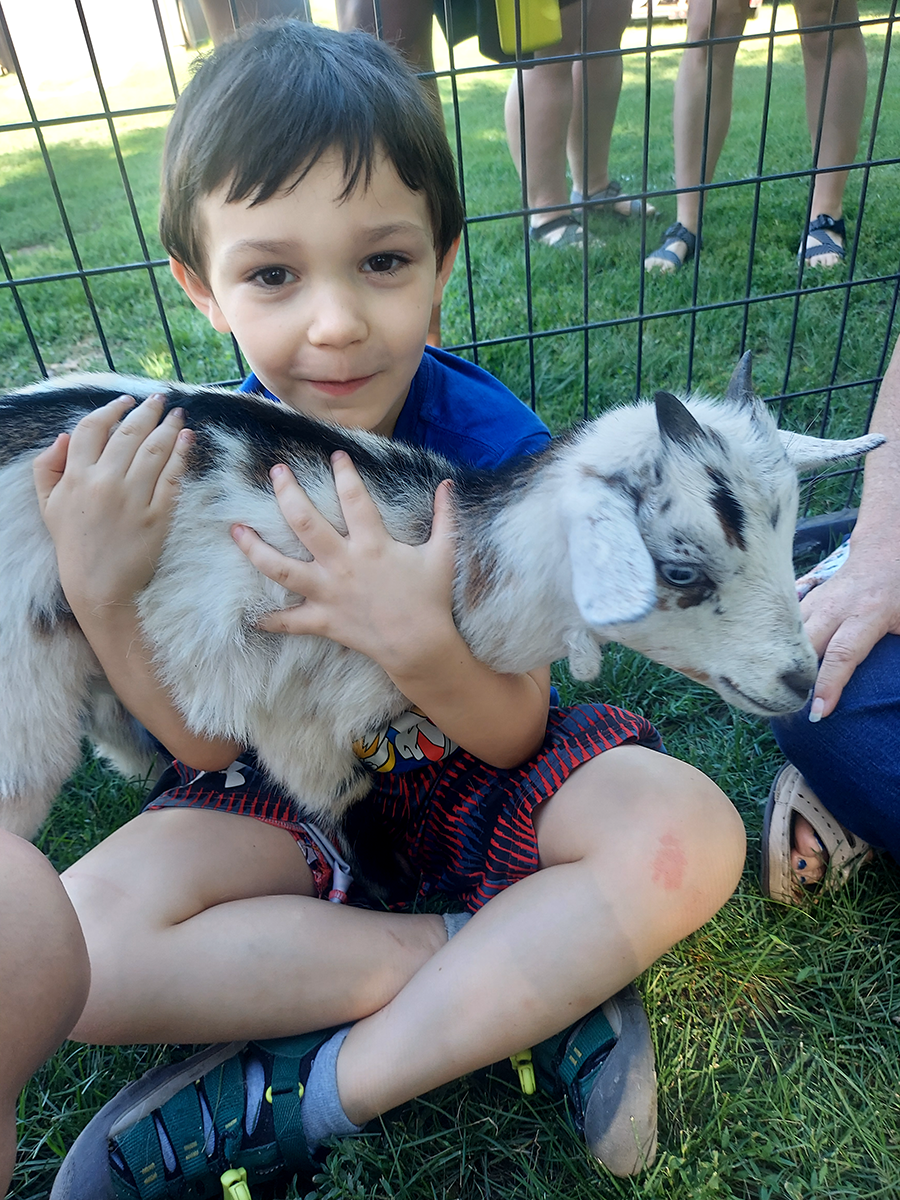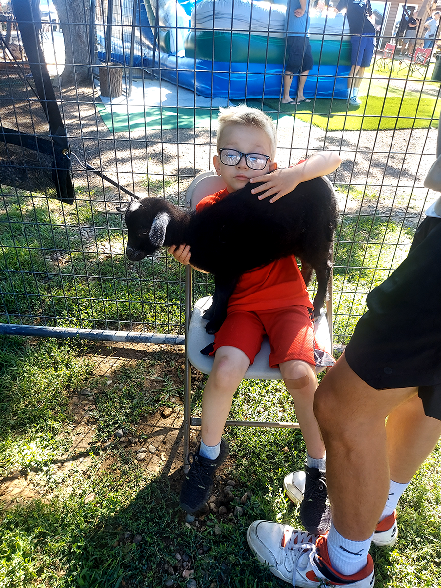 This year, the kiddos loved the petting zoo with kittens, rabbits, chickens, ducks and miniature goats. They also enjoyed a tractor-trailer ride around the property, where they could feed and pet the family’s horse, donkey, llama, cow and goats.