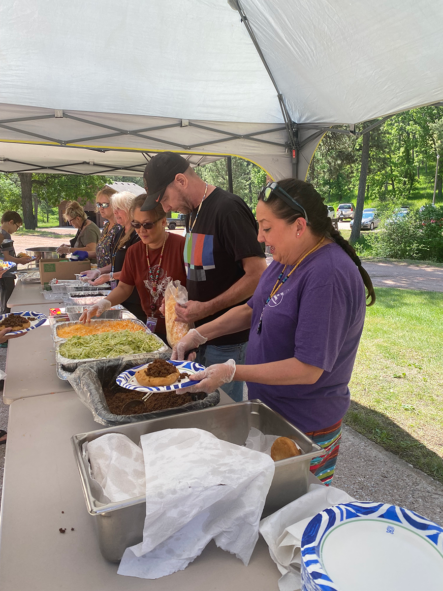 Thanks to the support of BHCH Facilities Supervisor Jerry Bamsey and his team, the campus grounds looked beautiful and ready for the day. Food Service Coordinator Lakota Carbone and the entire kitchen staff served up a mouthwatering feast of Indigenous foods—including fry bread and Indian tacos—which everyone enjoyed during the picnic that followed.