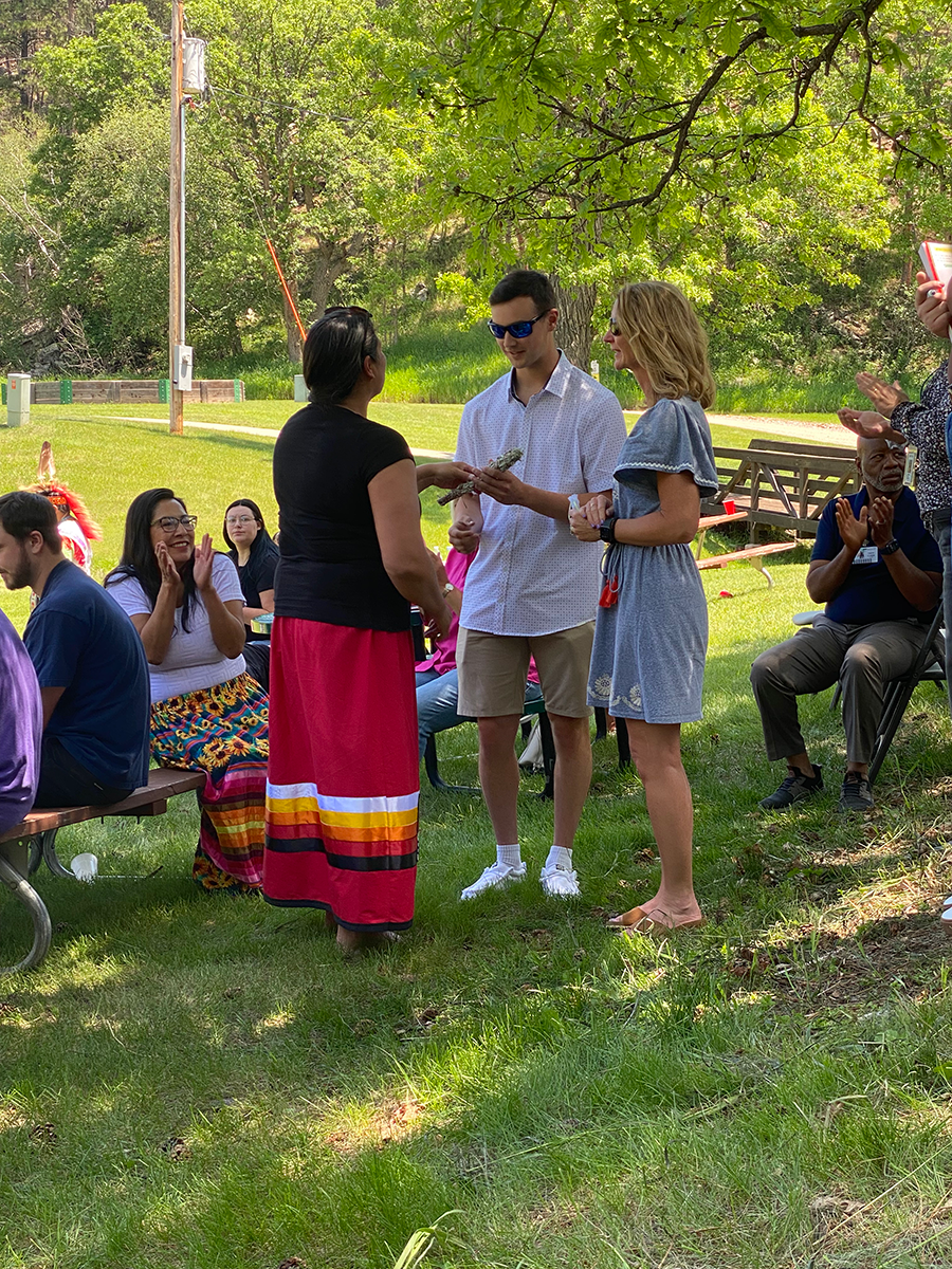 A special moment came when Jonni presented a token of gratitude to Children’s Home Foundation Board Member Val Mickelson and her son, Max, in honor of the late Governor George Mickelson. In 1990, Governor Mickelson helped establish Native American Day in South Dakota.