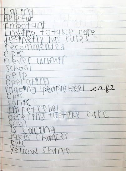 Isaac wrote this acrostic poem about CHS during Friday Free Write Time. “He felt he was really knowledgeable about CHS so he could write a lot about it in the poem,” says Crystal. “He came up with some of the words from things he has experienced at CHS.”