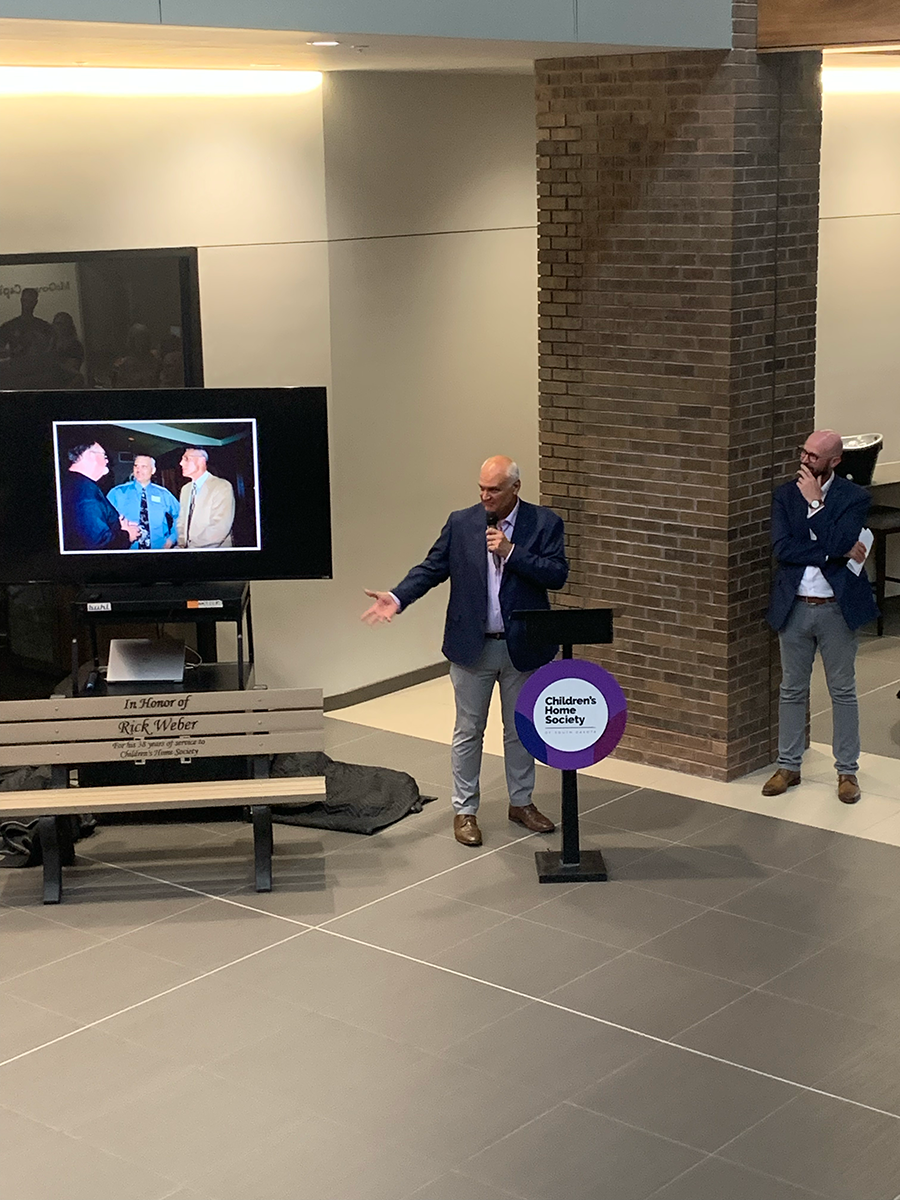 Over his 38 years, Rick made countless contributions to CHS, including helping create the “Friends on Call” fund. During Thursday’s party, it was revealed that the fund would now be known as the “Rick and Mary Weber Friends on Call Fund,” honoring the many ways Rick and his wife, Mary, have supported Children’s Home Society over the past four decades.