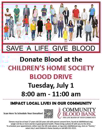 The Bloodmobile will be back at Sioux Falls Children’s Home on Wednesday, September 4, from 8:00 – 11:00 a.m.