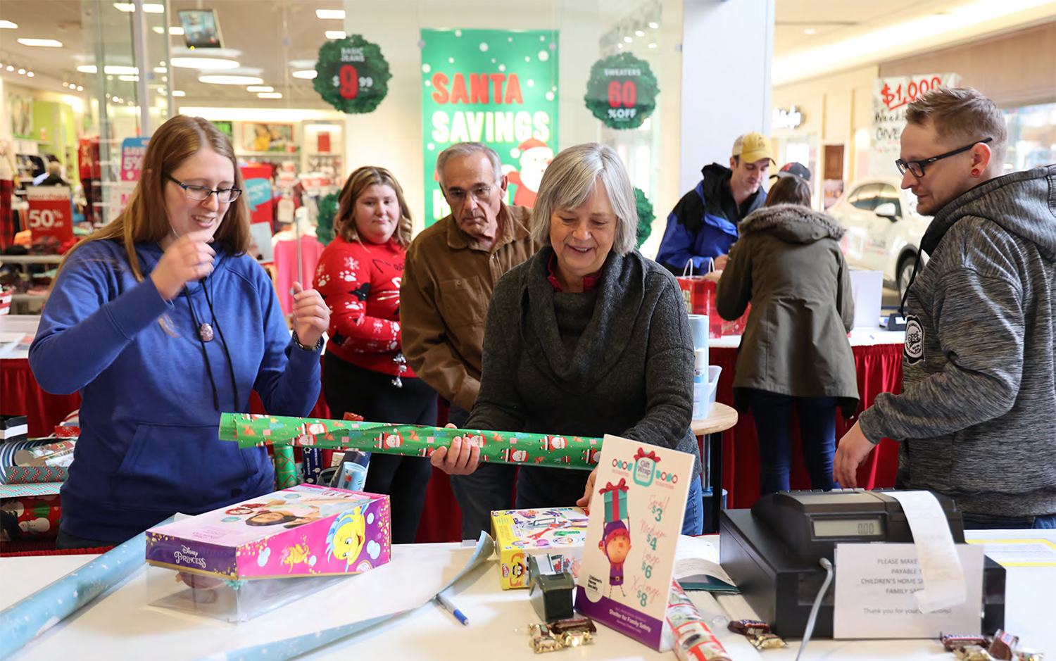 The Gift Wrap Booth at the Empire Mall is one of Children’s Home Shelter for Family Safety’s largest volunteer events and fundraisers. This year, we netted more than $50,000! Thanks to our lead sponsor, Blue Tide Car Wash (Sioux Falls and Brookings). Thanks also to our many volunteers, who made it all happen!