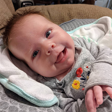 Meet Paisley Quinn Knoll, born at 1:37 am December 23, at 7 lbs., 10 oz. and 21.5 inches long. Her mother is Kara Knoll, part-time Brave Beginnings Youth Care Assistant at Children’s Inn.