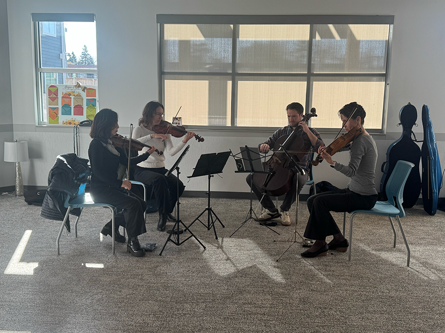 Music has a powerful way of lifting spirits and creating a sense of peace. Last week, the South Dakota Symphony Orchestra’s Dakota String Quartet visited Shelter and performed for clients and staff. Beautiful notes floated through the halls, and a sense of calm settled over the rotonda area.