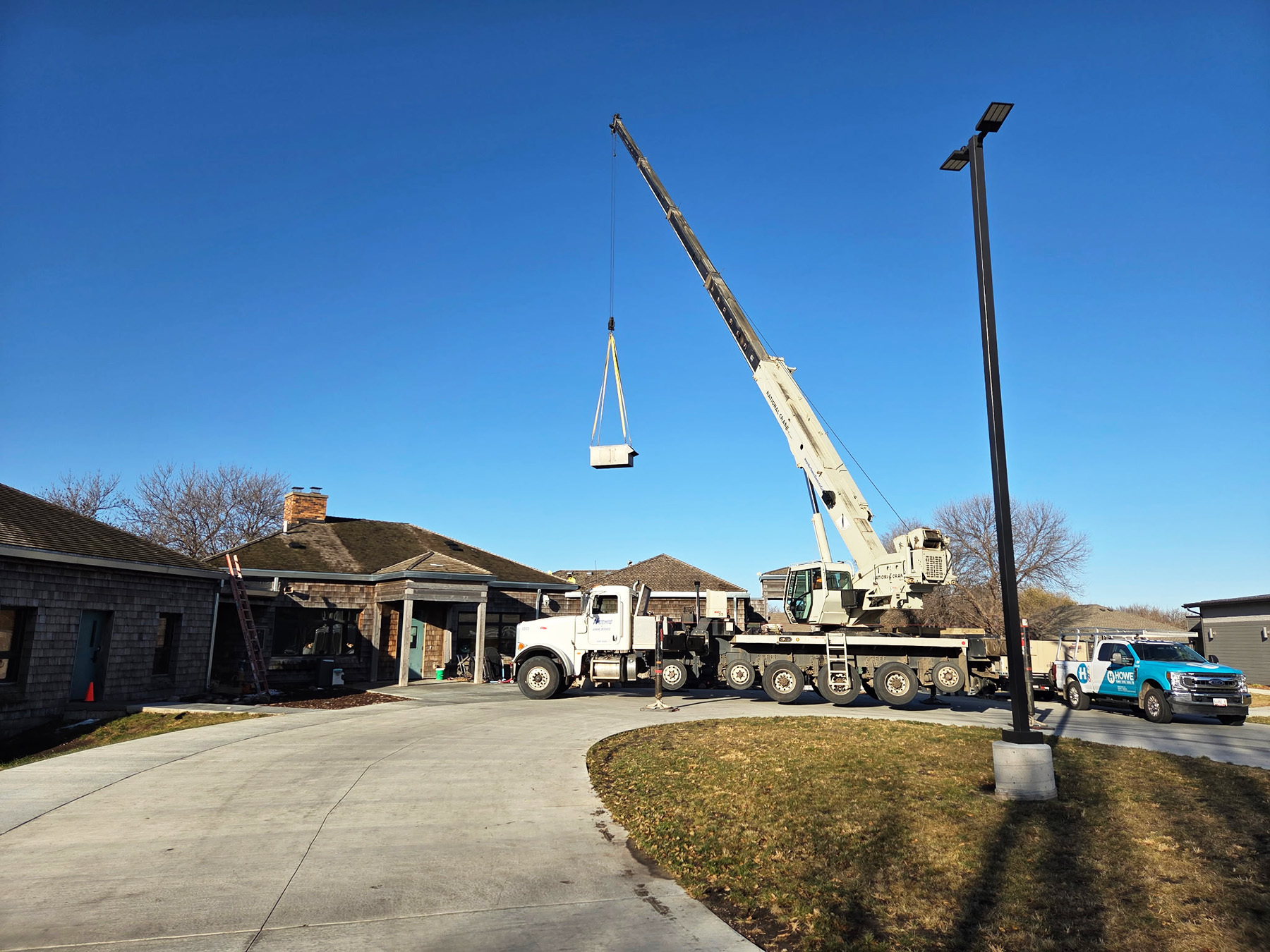 A giant crane made an appearance on the Sioux Falls campus last week. Our HVAC contractor removed two rooftop units and installed new ones, giving our VanDemark building a much-needed upgrade.