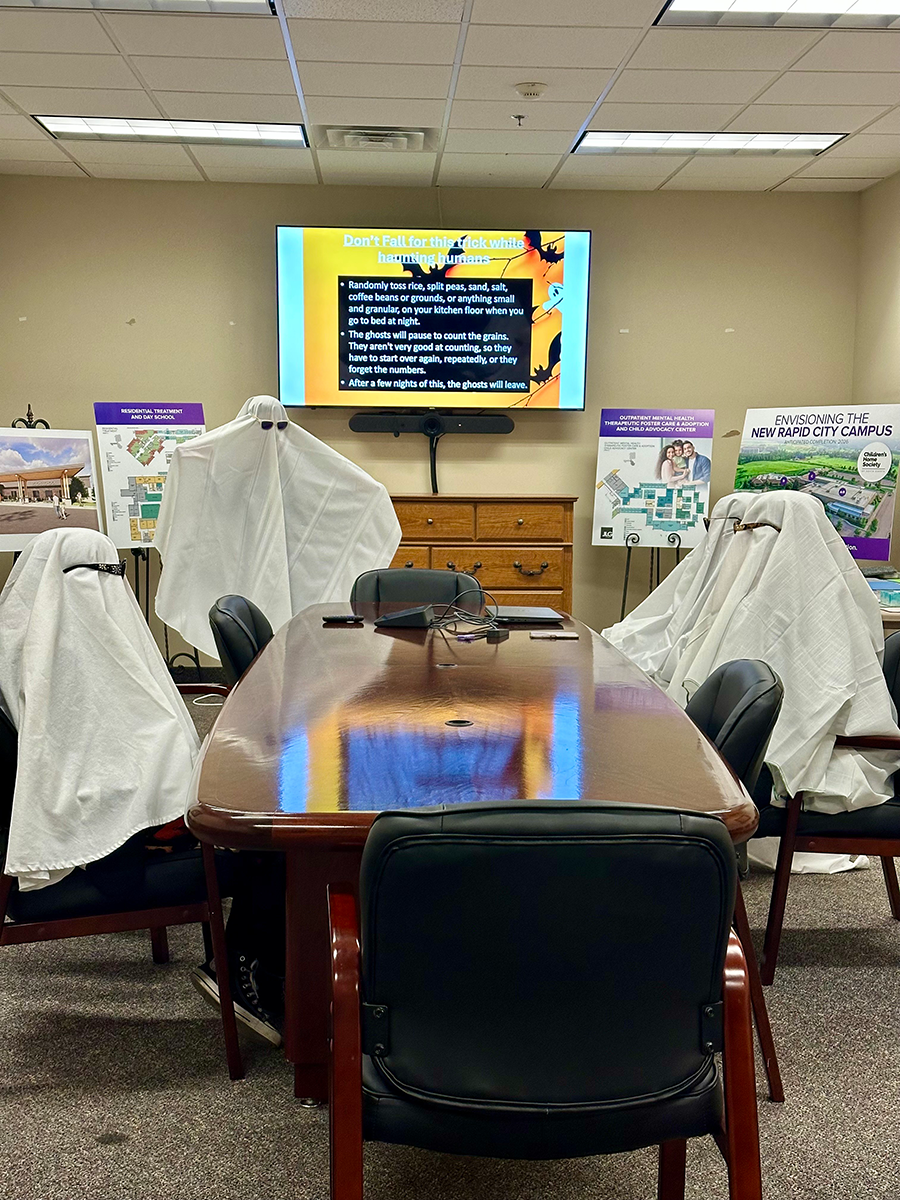We had some unexpected guests on the Rapid City campus last Friday—and they weren't your average tour group. A mysterious group of ghosts drifted in, claiming they wanted to see the latest construction updates. They were so impressed with our building that they decided to hold a meeting right in our conference room. We overheard something about "not falling for tricks while haunting humans," but it was hard to tell over all the bone-chilling shrieks and eerie echoes.