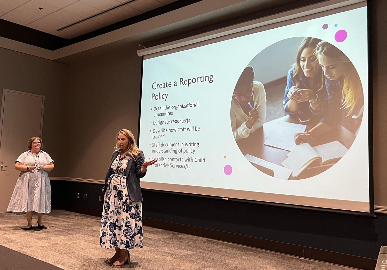 The 2025 Community Response to Child Abuse Conference took place last week in Sioux Falls. Jessica Broullire, Child Advocacy Center Assistant Director, partnered with Tifanie Petro, Victim Service Director at Pennington County State’s Attorney Office to present Safeguarding Your Youth-Serving Organizations at the conference.