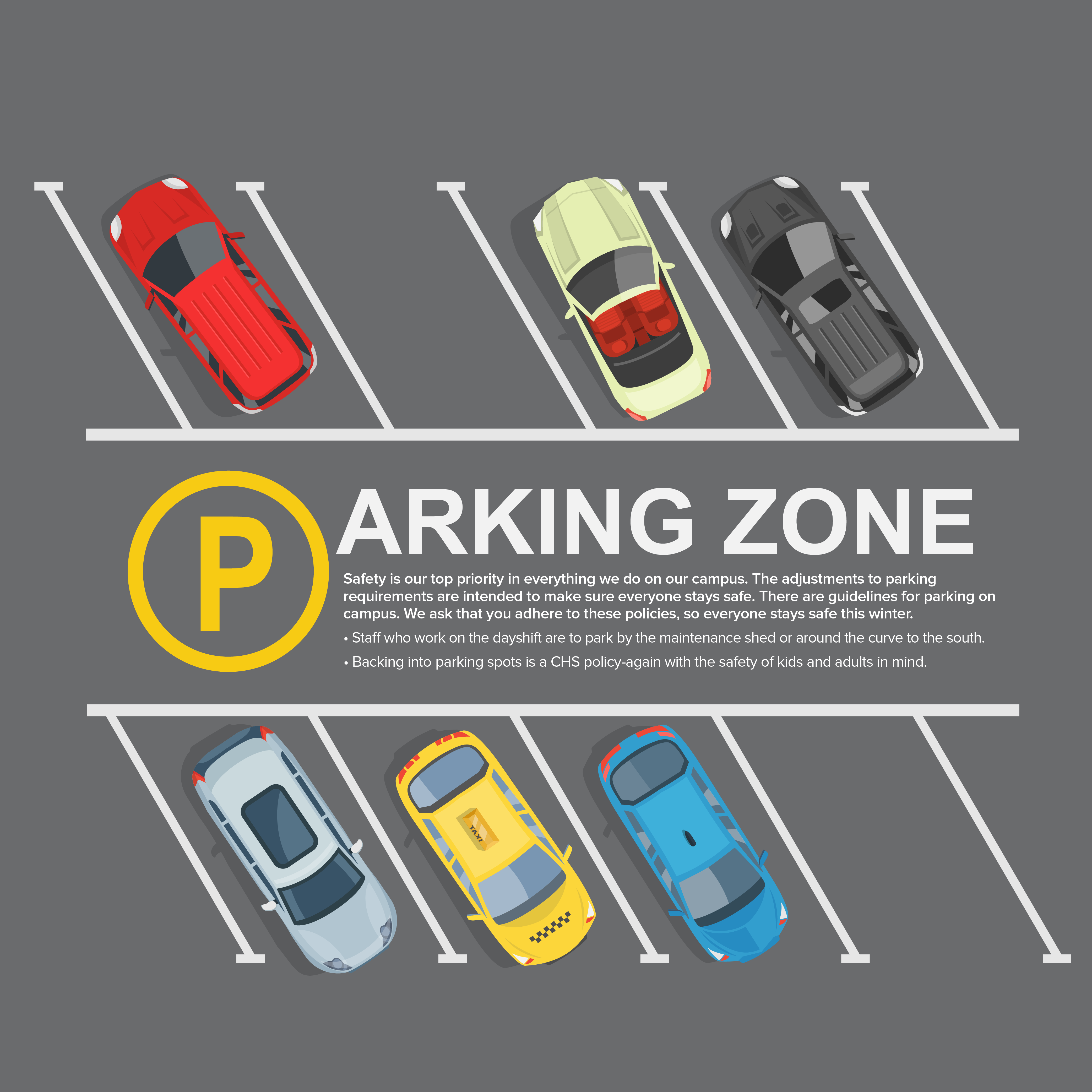 2. Backing into parking spots is a CHS policy—again, for the safety of children and adults. We do not have sidewalks for foot traffic, so backing in allows for a safer exit when you leave. If there is a reason you are unable to back into a parking space, you will need to park as far back towards the south entrance as possible to reduce risk for children, visitors and other staff walking in the lot.
