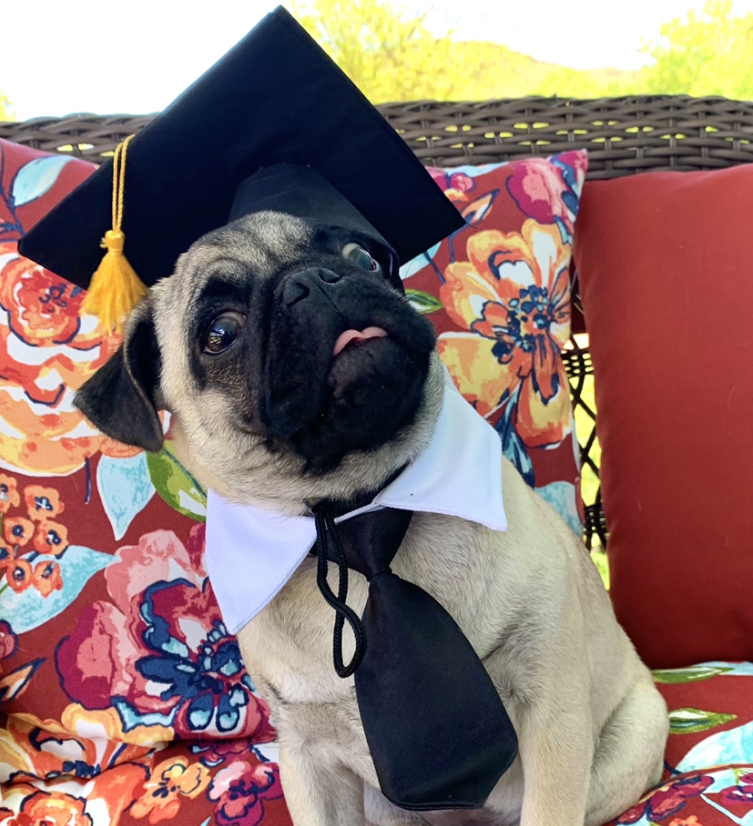 Funniest memory with your pet: Paulie is a most particular pug. When he was five months old, I enrolled him in a basic puppy training class. When it came time to learn how to sit, Paulie absolutely refused, even for a handful of treats. As we were walking around, Paulie responded to the “sit” command when we were in a carpeted area. As it turns out, he just did not want to put his bottom down on the cold, hard, tiled floor. From then on, I had to bring a mat to Paulie's training sessions for him to practice sitting on, and his trainer dubbed him “The Luxury Dog.”