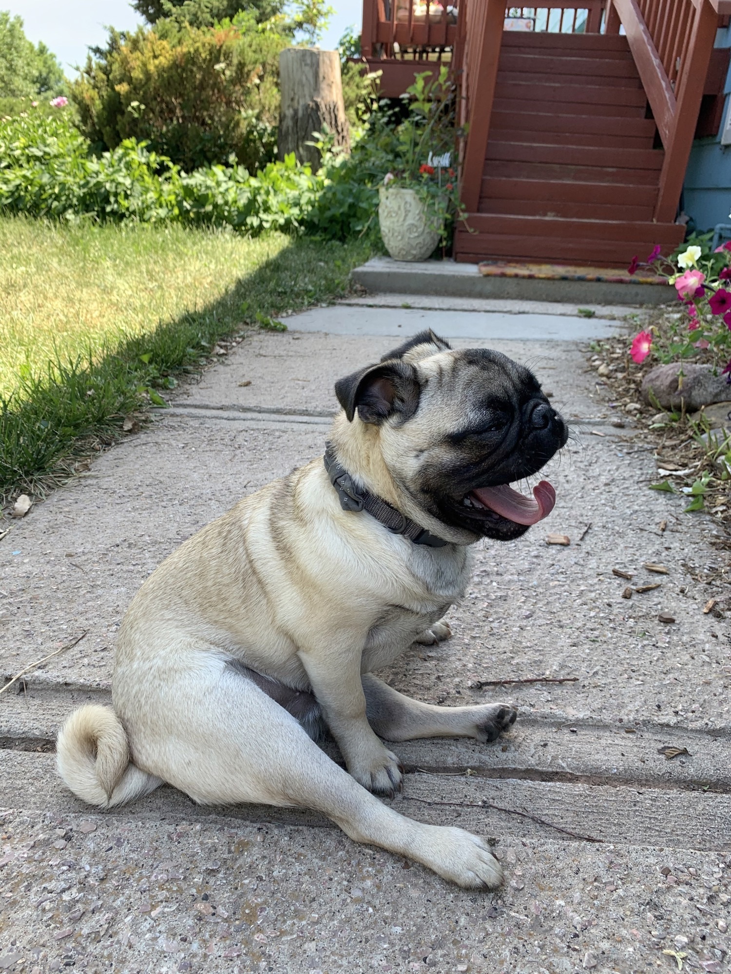 Favorite activity: “Zoomies” in the back yard followed by a long nap (complete with loud pug snores!)