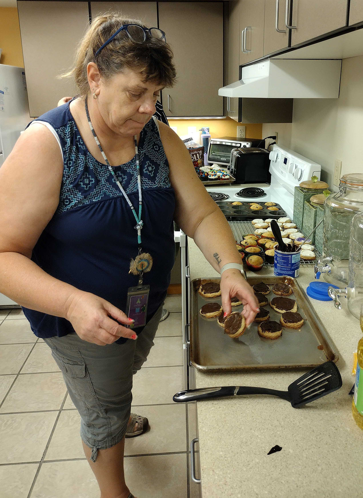 On Friday, August 18, staff met bright and early in the CAC kitchen. By 11:15 am they had four dozen cookies, three dozen cupcakes, a dozen muffins and two pans of brownies, all packaged to donate for the bake sale on August 27.
