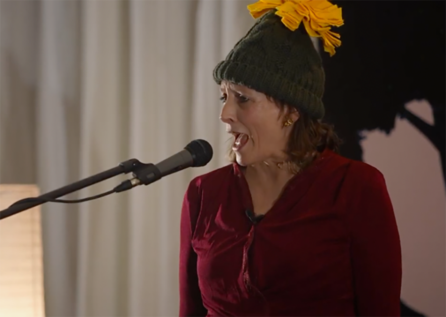“The outside natural world gave me a different message,” she says. “There, I knew I was part of something bigger, something beautiful. As I moved through the seasons of life, I used storytelling/songwriting to move through the tough spots. When I began putting the show together, I went back to where I began–the frog pond.”