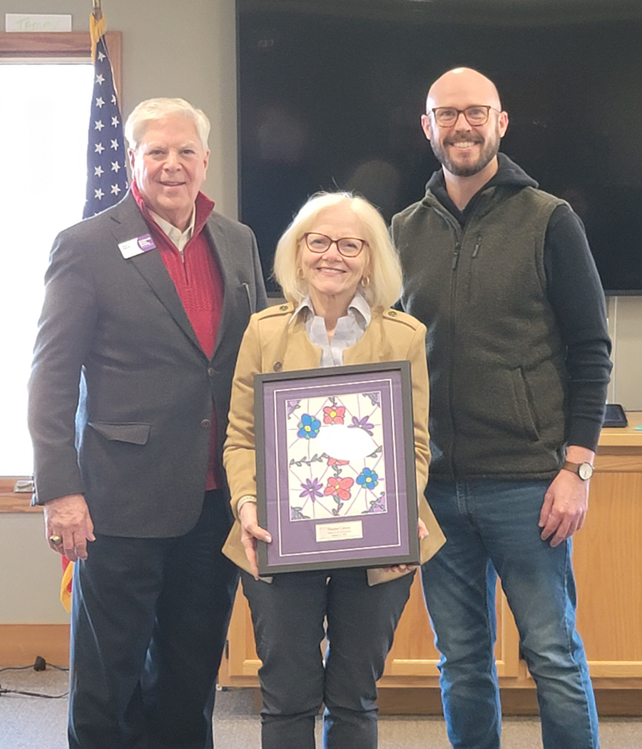 CHS Board Chair Jack Marsh and CPO Jon Mammenga presents Deanna with a piece of framed artwork.