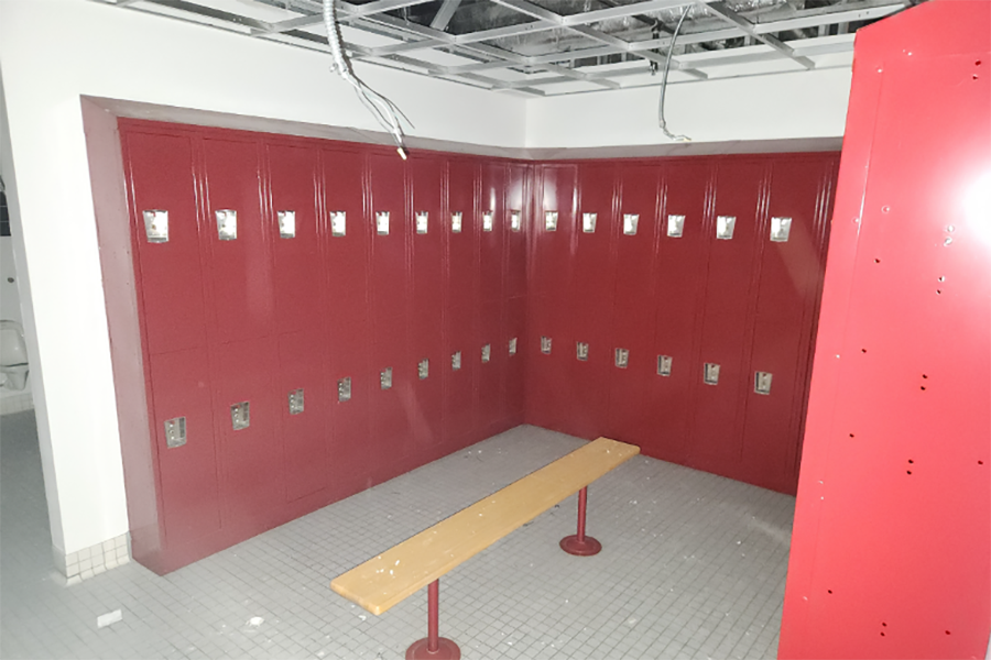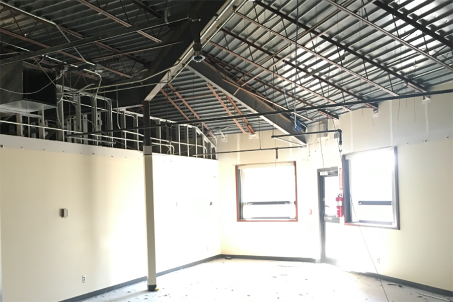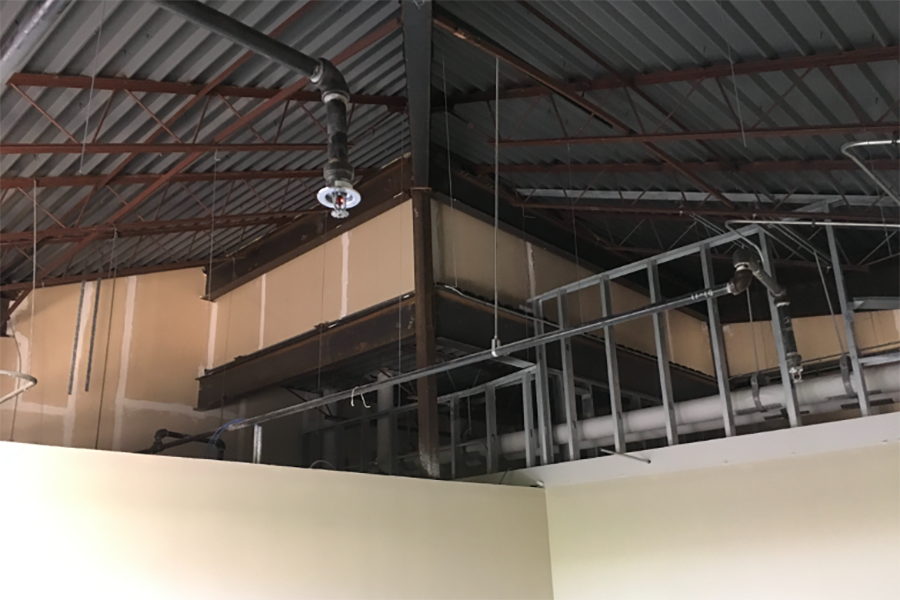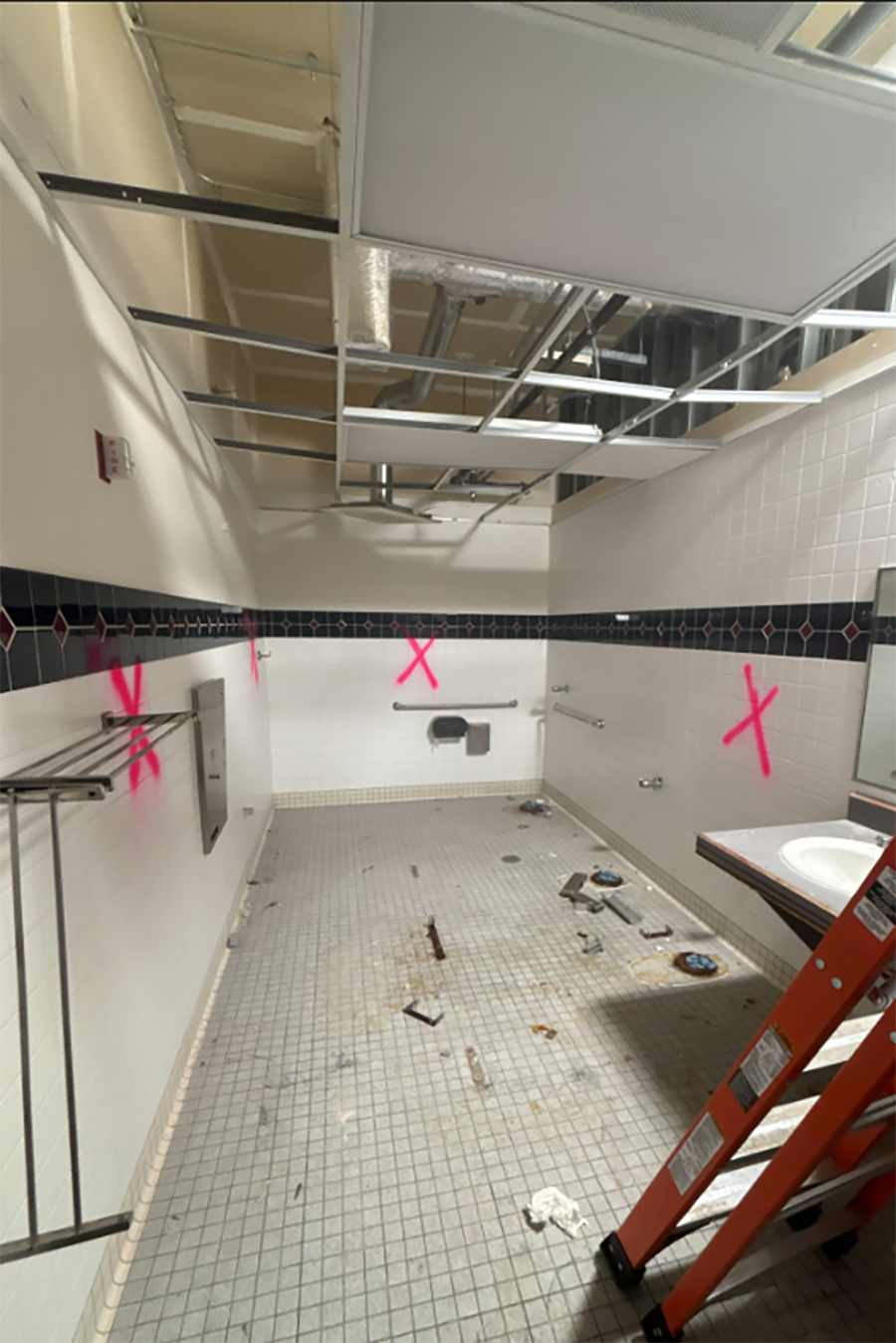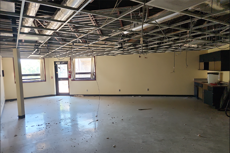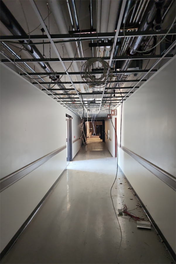 Crews are almost finished removing acoustic ceiling tiles throughout Area D.