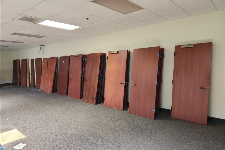 We collected nearly 80 doors from Area D, all of which we will save and reuse during the remodel to help reduce construction costs.