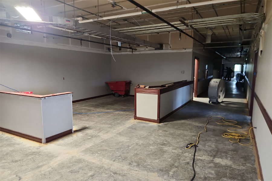 Crews have been busy in Area D, removing all carpeting, flooring, a few walls and some ceiling tiles!
