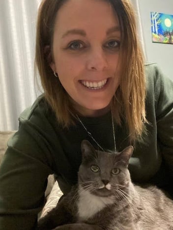Hazel likes to be close to her people—so close that she grabs your feet when you are walking. This is a habit we are working on breaking.