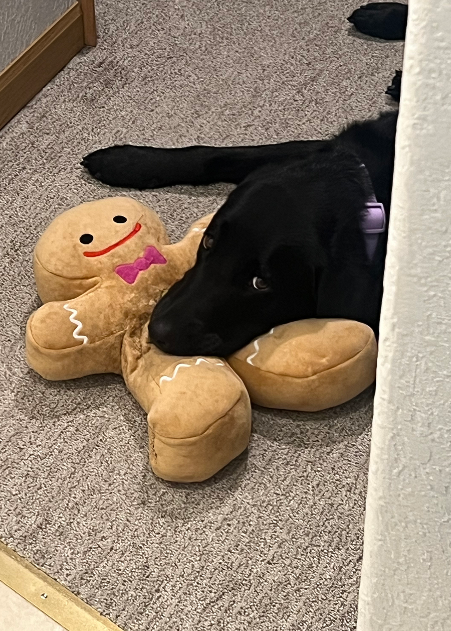 Favorite toy: She loves her oversized gingerbread stuffed toy.
