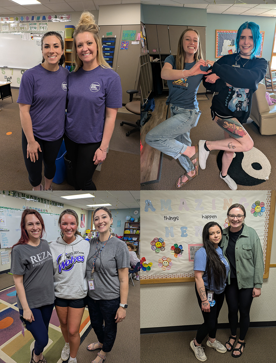 It was wicked fun celebrating our education staff during Teacher Appreciation Week! Here are a few of the smiles we captured at Owen School. Top left: Classroom Teacher Intern Ninny Ruiz-Plaza, Teacher Shelbi Kaul, Teacher Assistant Kelly McInerney, Teacher Assistant Beck Jackson. Teacher Assistant Mya Reeves and Teacher Tana Clark. Bottom left: Teacher Destiny Wolbrink, Teacher Assistant Declan Malone, Ninny and Teacher Assistant Jace Jackson.