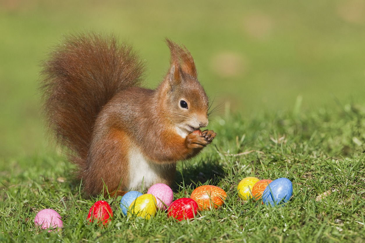 All the eggs had been opened and emptied—with not a wrapper to be seen! There were toothmarks on some and some were chewed. Our investigative IT team was able to pull video footage and discovered that one very busy squirrel had stashed away the candy!