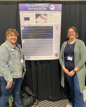Also in attendance were Children’s Home Shelter for Family Safety Outreach Advocate Kate Feilmeier and Family Engagement specialist Loree Crawford, shown here with their poster highlighting the achievements of CHWs at CHS. Our other two CHWs, Family Engagement Specialists Sarah Crawford and Angella Kegler, were not preset but their achievements were represented on the poster.