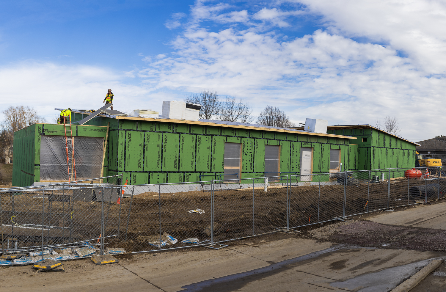 With the new dining hall in Sioux Falls fully enclosed, you may not notice it, but construction work continues. Outside the structure, a local excavating company finished building a retaining wall and the framers began construction on the back deck. Inside, subcontractors are roughing in the plumbing, electrical, heating and air conditioning, and fire safety. Overall, construction is about one week ahead of schedule due to the warmer winter. Here’s a sneak preview of what’s going on inside!• • •