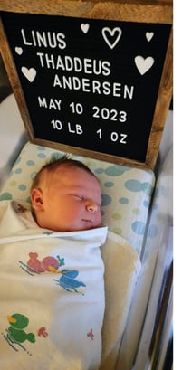 Ten pounds, 1 oz, that is! On May 10, Janet Andersen, Marketing/Communications Director, welcomed her sixth grandchild into the world: Linus Thaddeus Andersen.