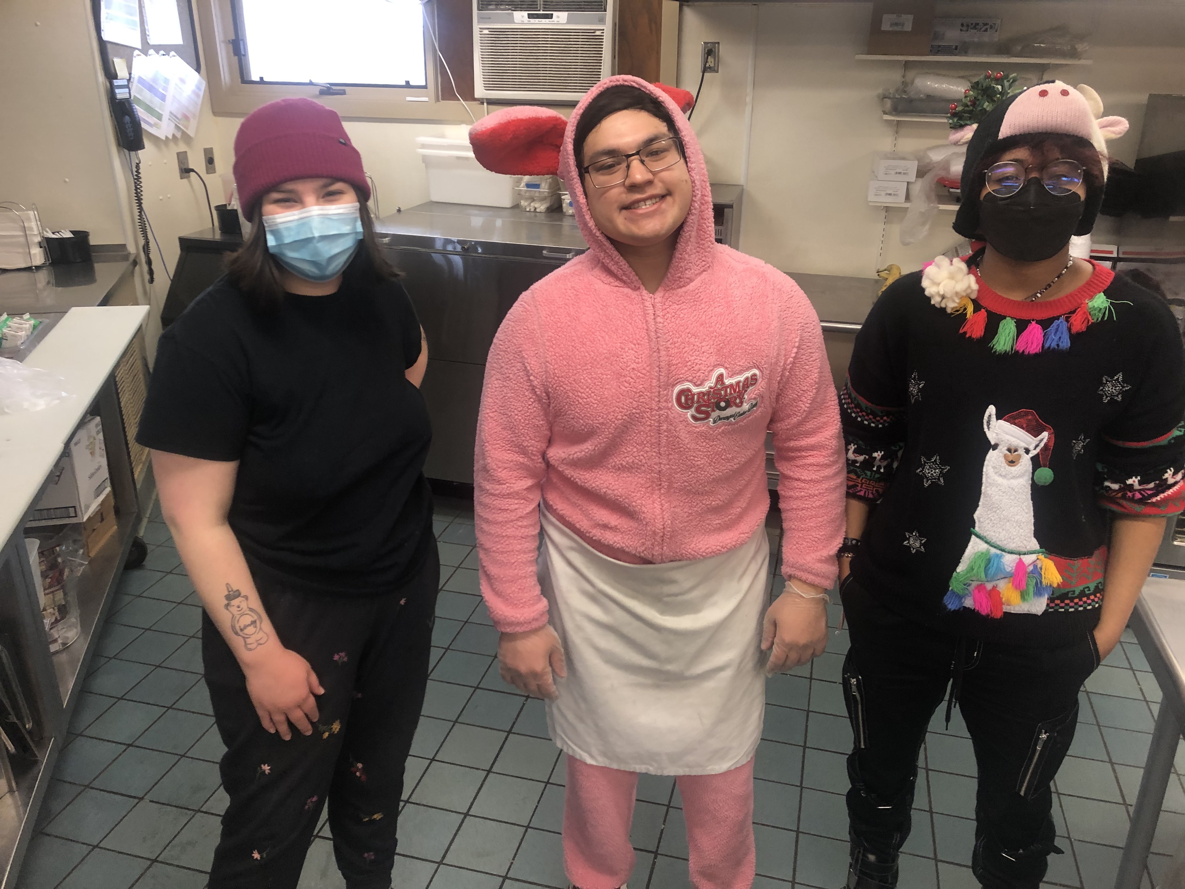 Christmas at SFCH is something special! For instance, the three cooks shown dressed in costume and served roast beef with all the fixings and dessert! The children wore new pajamas and loved every minute of it!