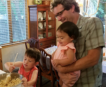His family includes his wife, Kim; stepson Luke, a Boeing 777 pilot who lives in Anchorage; daughter Emily, who teaches high school in Sioux Falls; daughter Allison, who works at the Sanford Foundation; stepdaughter Nicole, who just started at Deloitte in Los Angeles; grandchildren Jisung, age five, Jiuen, age two, and a set of twins due in February.