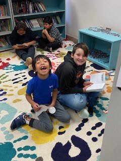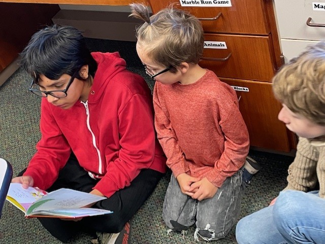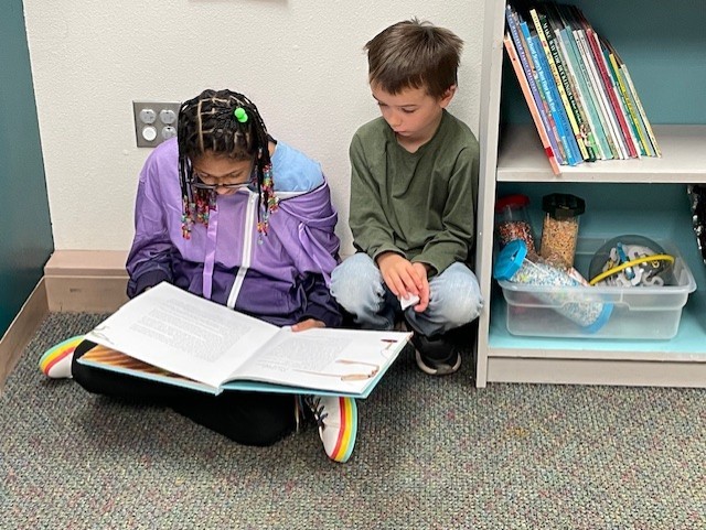 Pre-K, kindergarten and first graders in room five have teamed up with middle schoolers in room six to create a reading program called Book Buddies. The younger students pick out several books that interest them, and then their Book Buddies spend time reading and interacting with them.