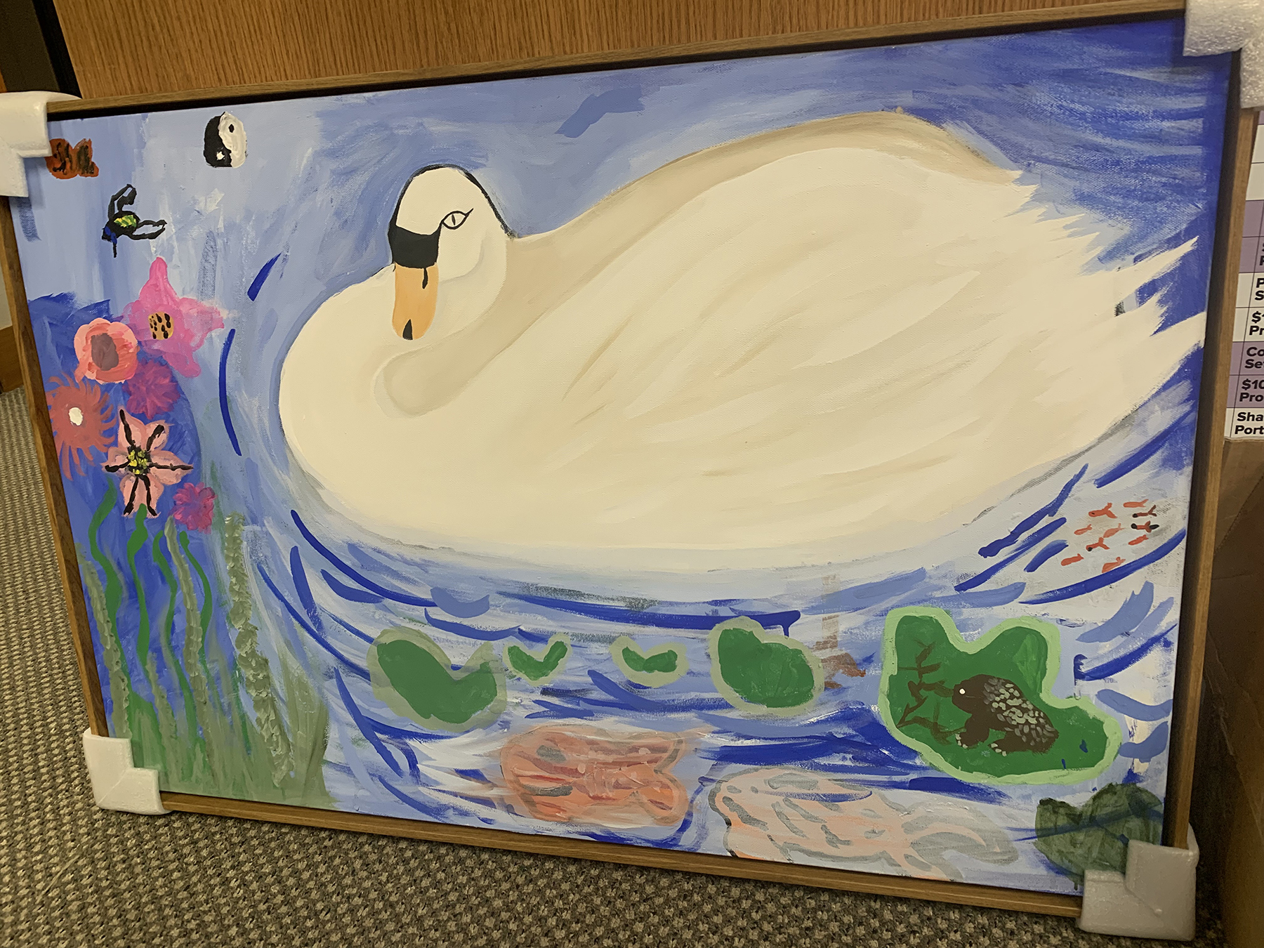 Loving School Art Teacher Rylee Lehmkuhl led this special art project that was auctioned at the event and raised $15,000. The 24 participating middle school students discussed the symbolic meaning of a swan, a representation of healing and hope. The artwork, which depicts a swan, a fish, a frog and a bee, symbolize aspects of each student’s personality, their transformative experiences through creativity and their journey