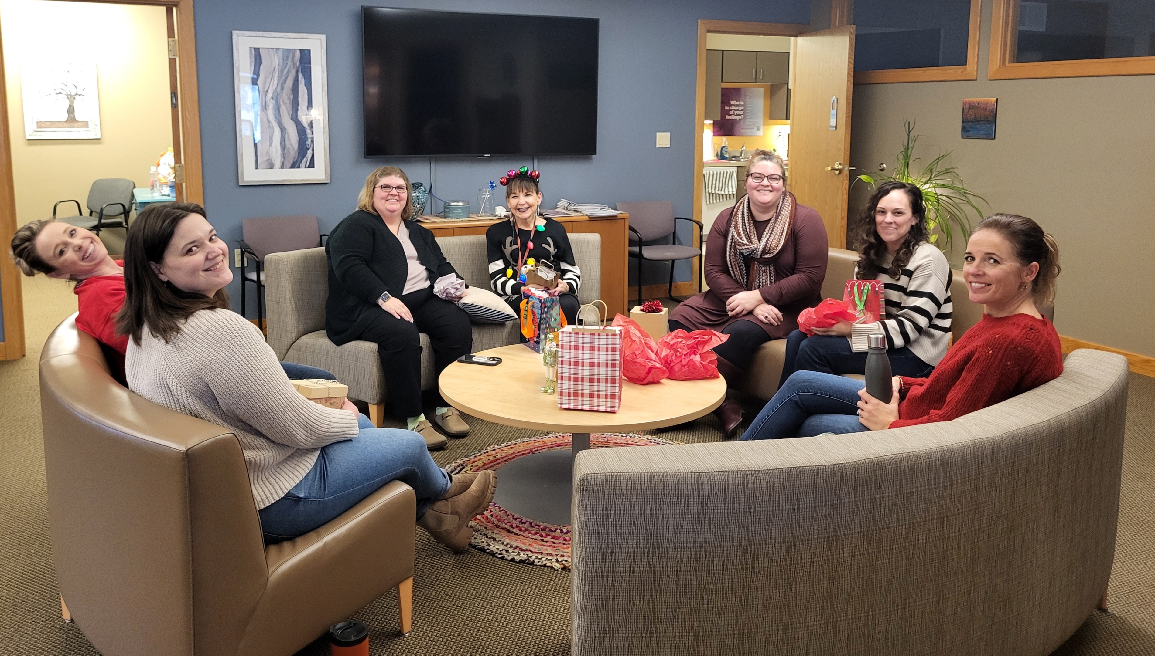 Staff from Jolly Lane got into the Christmas spirit earlier this month with an ornament exchange, potluck and ugly Christmas sweater day. Left to right: Administrative Assistant Maren Schaap; Education & Public Awareness Specialist Jessica Broullire; Child and Family Services Director Tifanie Petro; Development & Events Manager Theresa Schreiner; Volunteer/Development Coordinator Abby Scharp; Lead Forensic Interviewer Brandi Tonkel and Family Advocate Coordinator Jennifer Arnold.