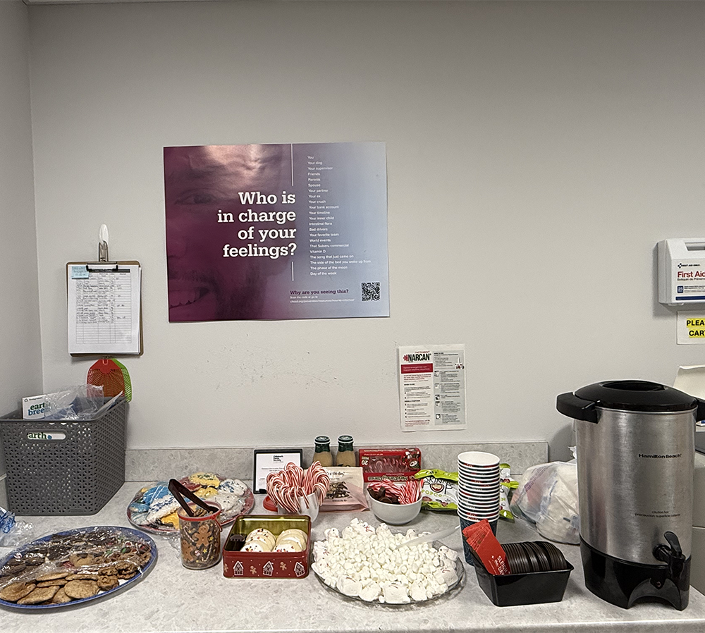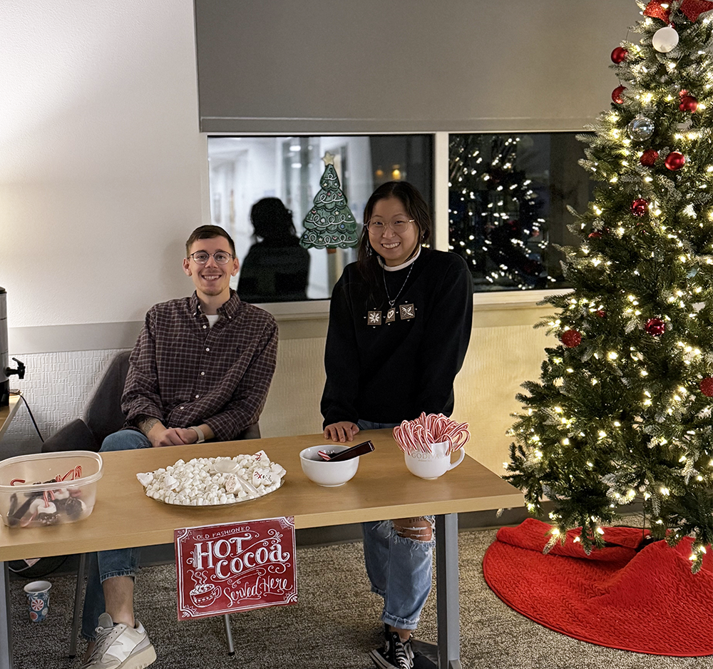 Assistant Program Supervisor Breckin Steilen and Youth Care Provider Grace Eager served hot cocoa, marshmallows and candy canes to clients.