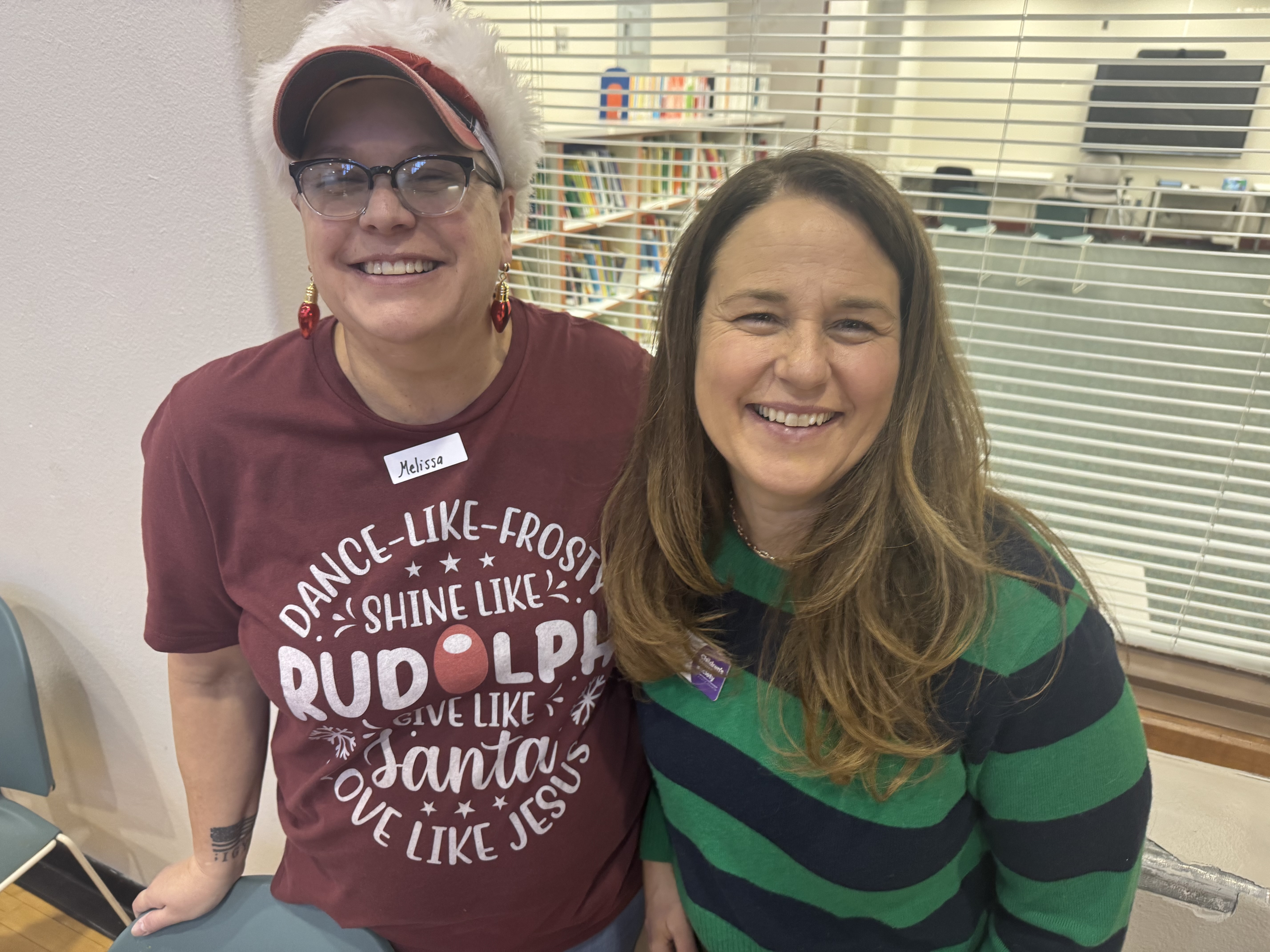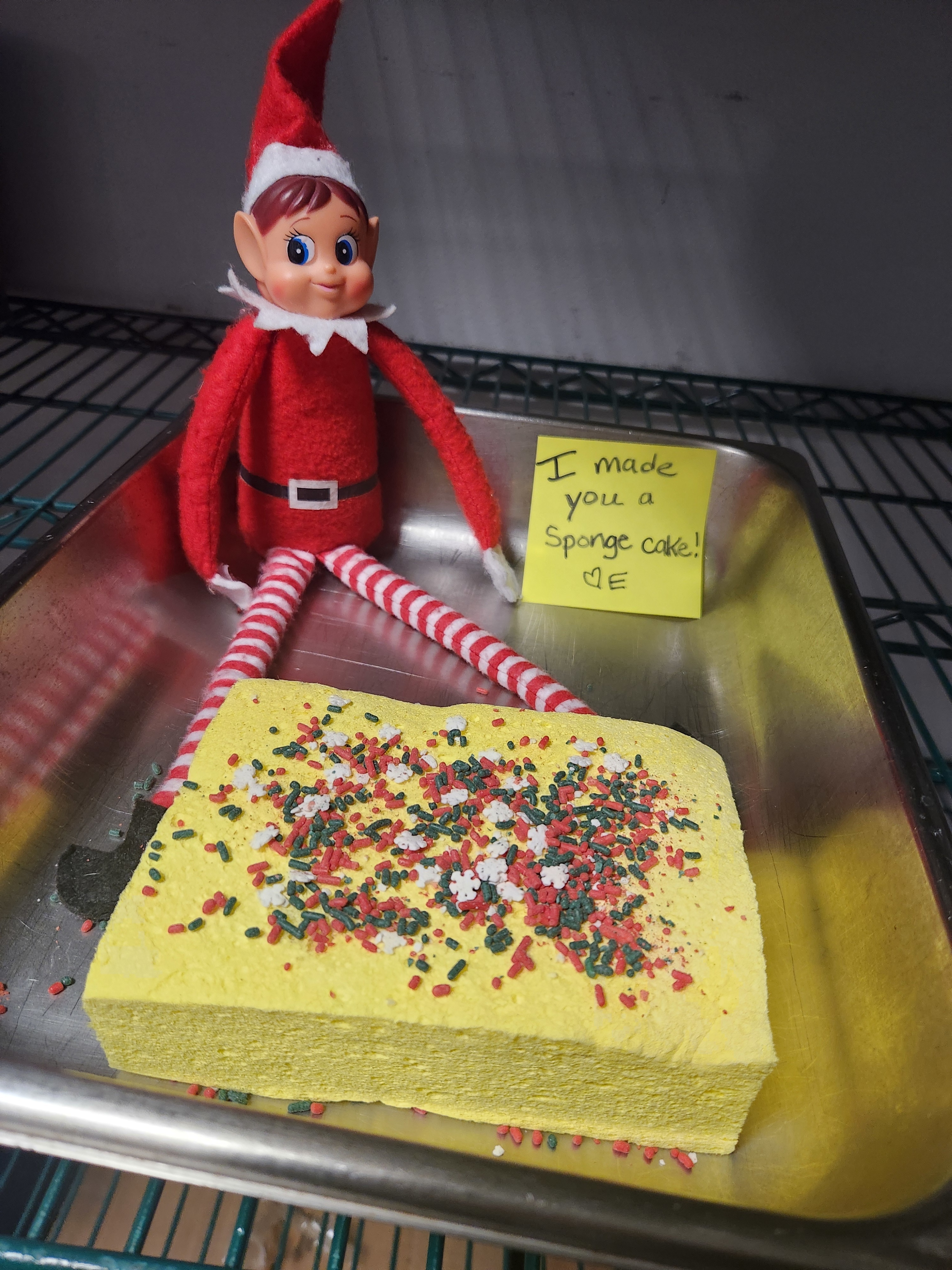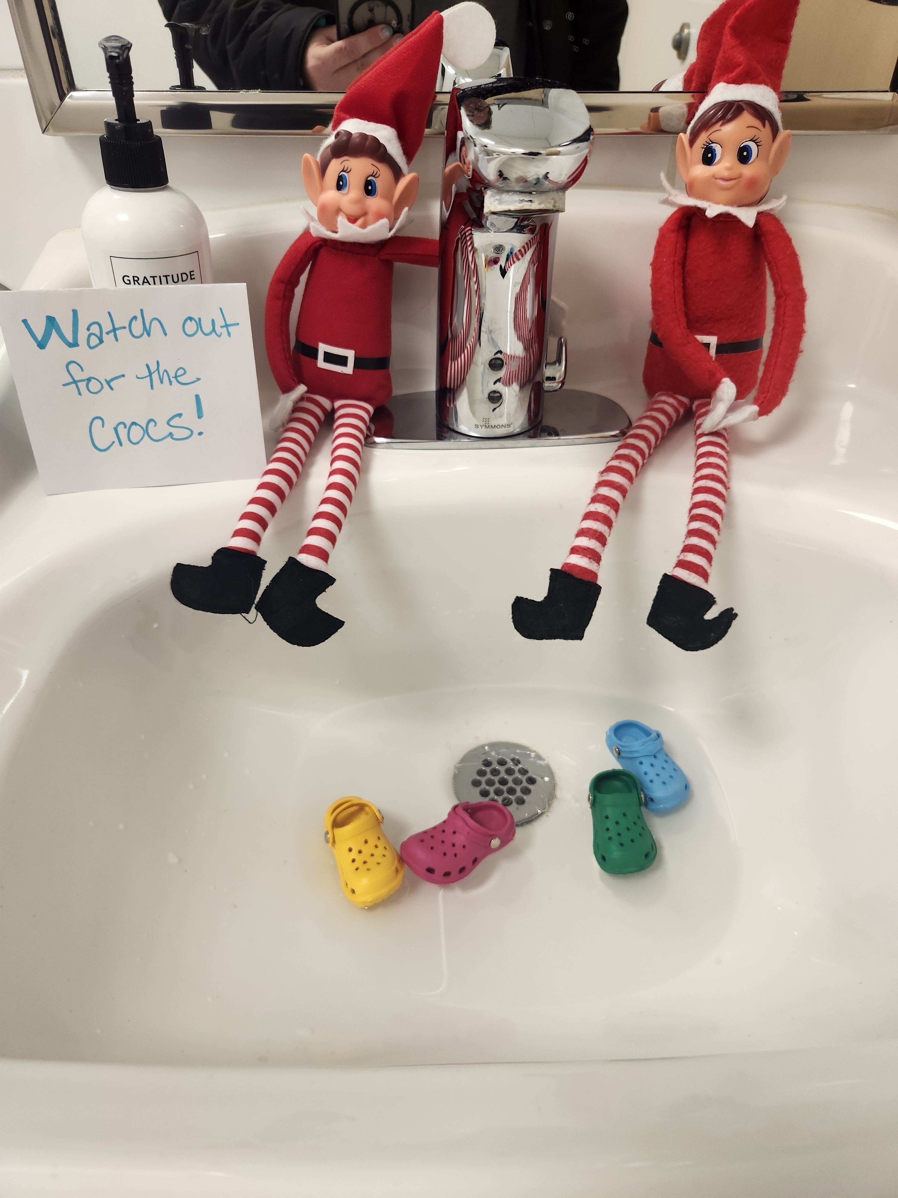 A few blocks away, the Shelter for Family Safety had two of Santa’s helpers show up to get staff into the holiday spirit. Evelyn and Elvis journeyed from the North Pole and are getting into all sorts of Christmas shenanigans– like releasing Crocs in the bathroom. Shelter staff are also doing a candy cane hunt, so be on the lookout for red and white stripes. Happy searching!