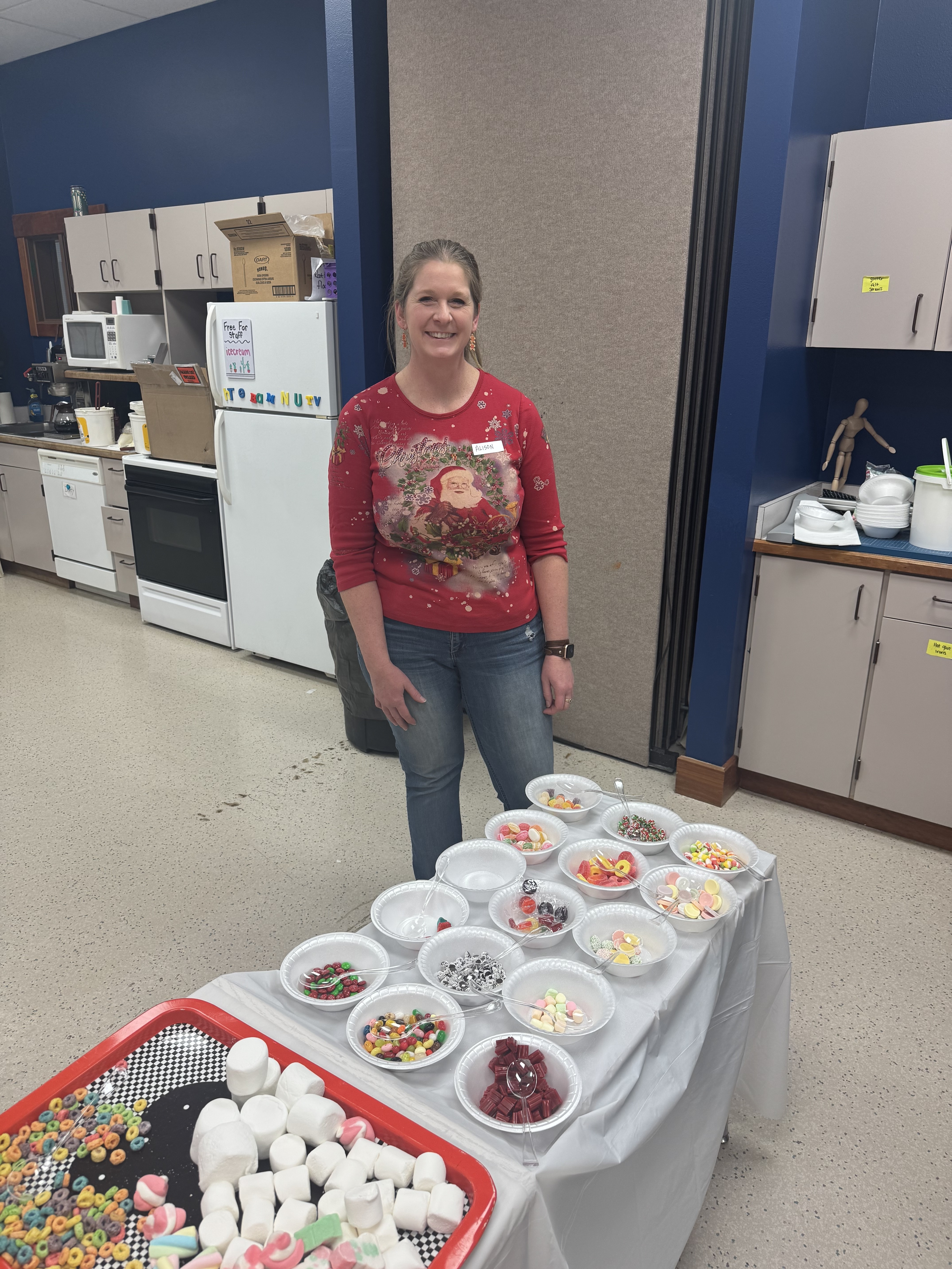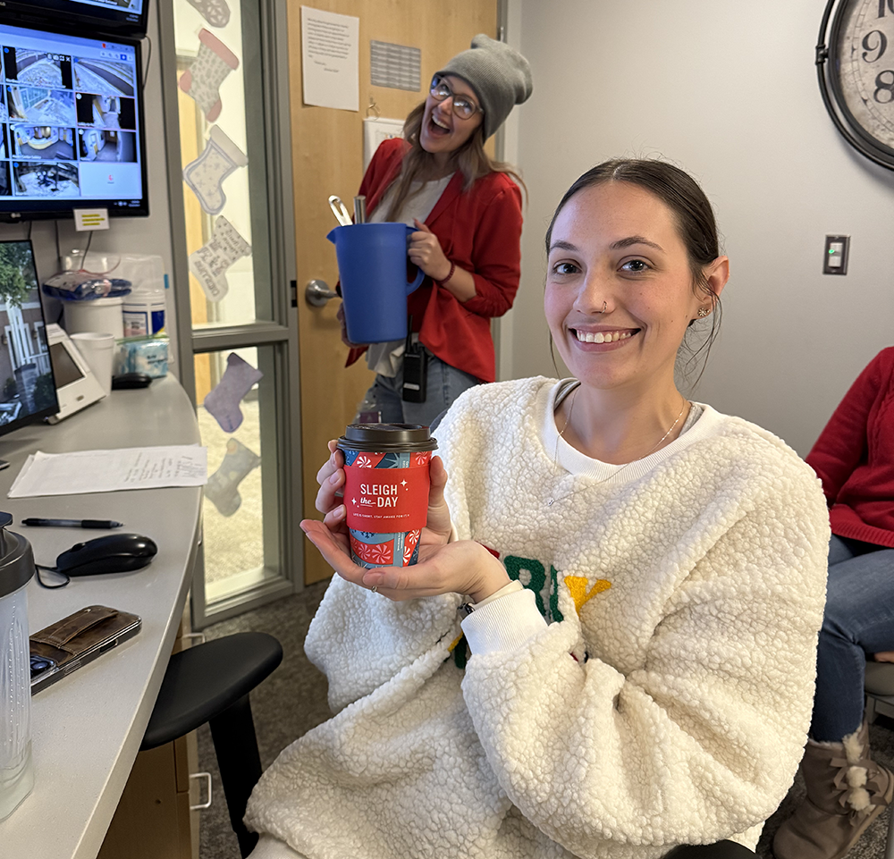 Cook Reanna Mennis and Youth Care Provider Kinzie Telgren were looking festive as they enjoyed a little hot cocoa break.