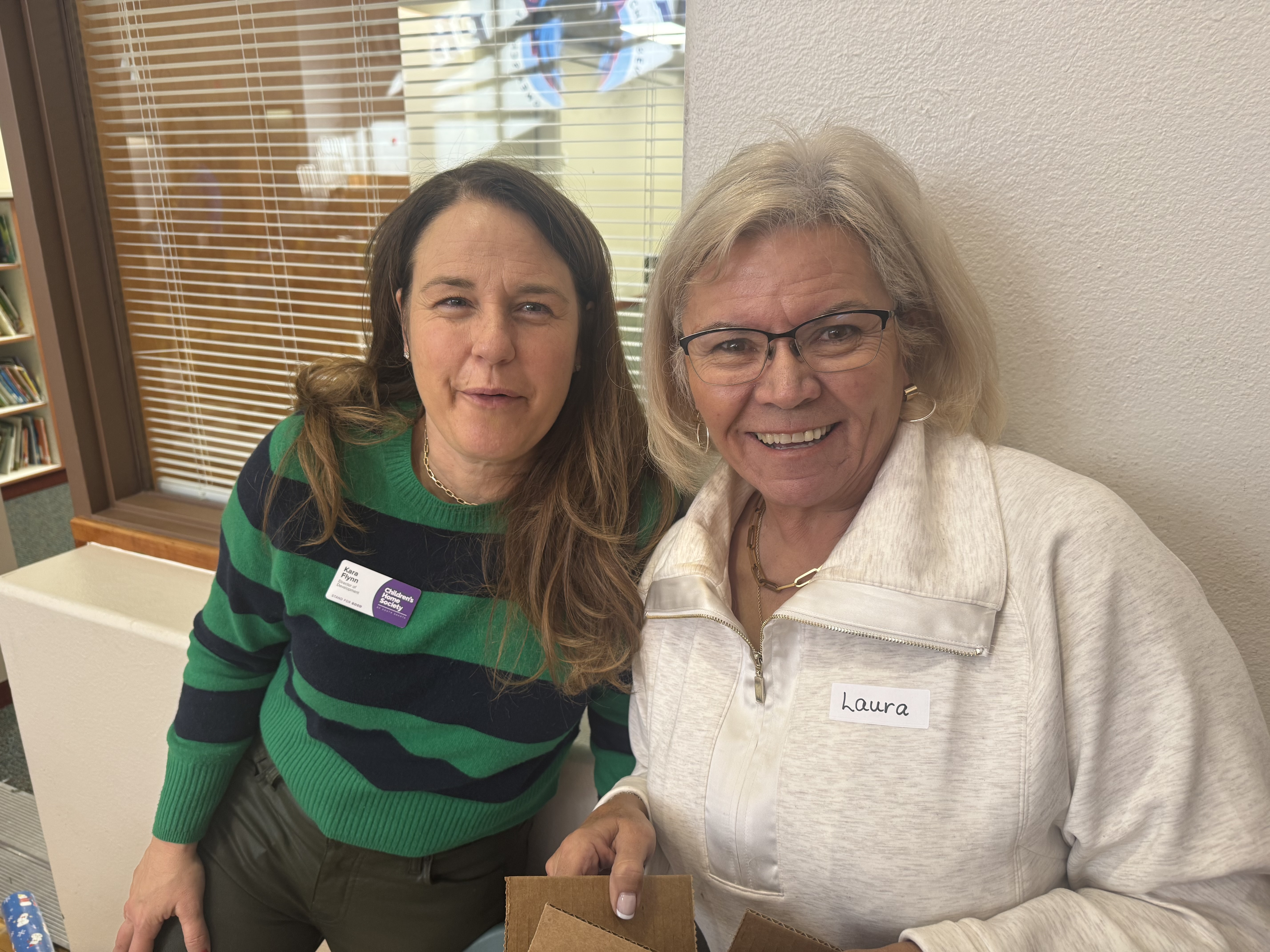 Assistant Program Supervisor Emily Hall and Crisis Advocate Britney Kennedy were staying warm and toasty with their pitcher—I mean mugs—of hot cocoa.