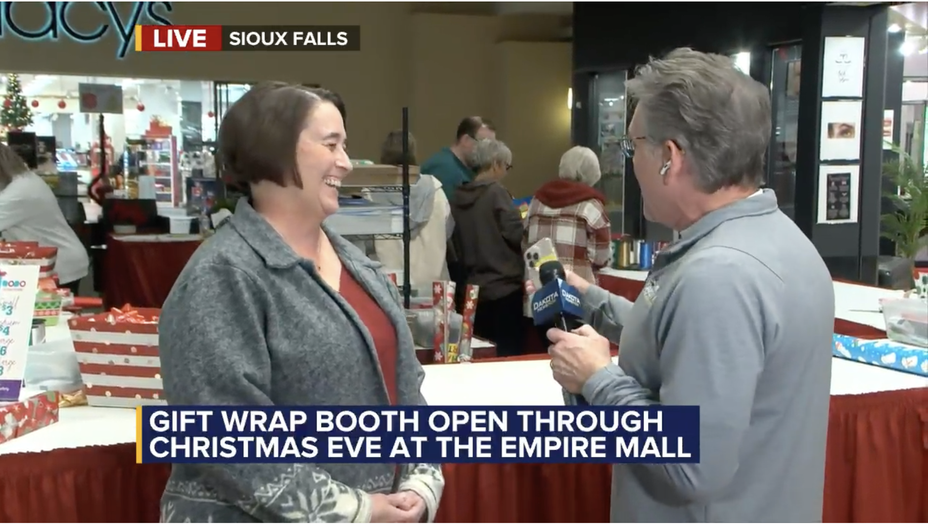 The Gift Wrap Booth is in full swing at the Empire Mall in Sioux Falls. Development Coordinator Staci Kroupuenske joined Dakota News Now reporter Phil Schreck for an interview to encourage shoppers to stop by and get their gifts wrapped. Watch Staci’s interview here.