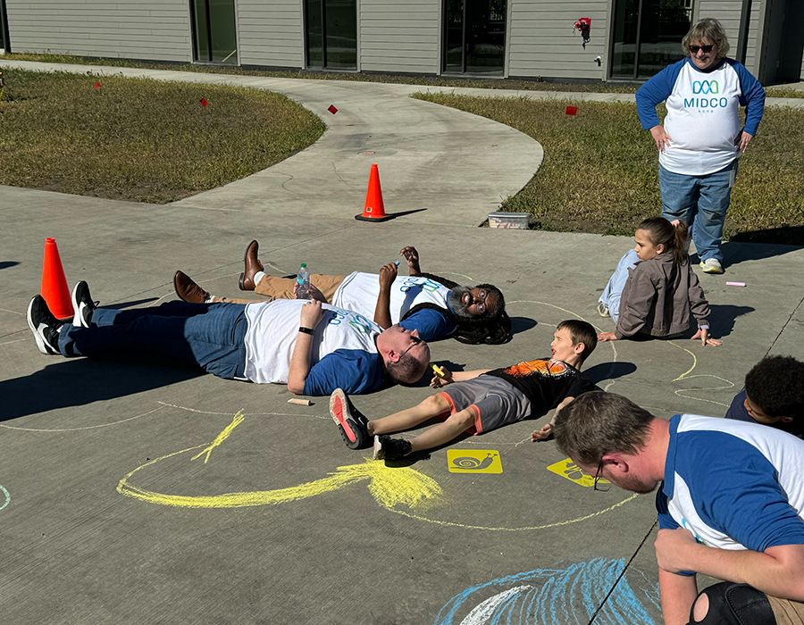 Summer is hanging on by a thread here in Sioux Falls and last week we had some gorgeous sunny days. Our friends at Midco stopped by for a tour and then spent the afternoon with the kids creating sidewalk chalk pictures. We’re not sure who was having more fun–Midco, the kids or our staff!