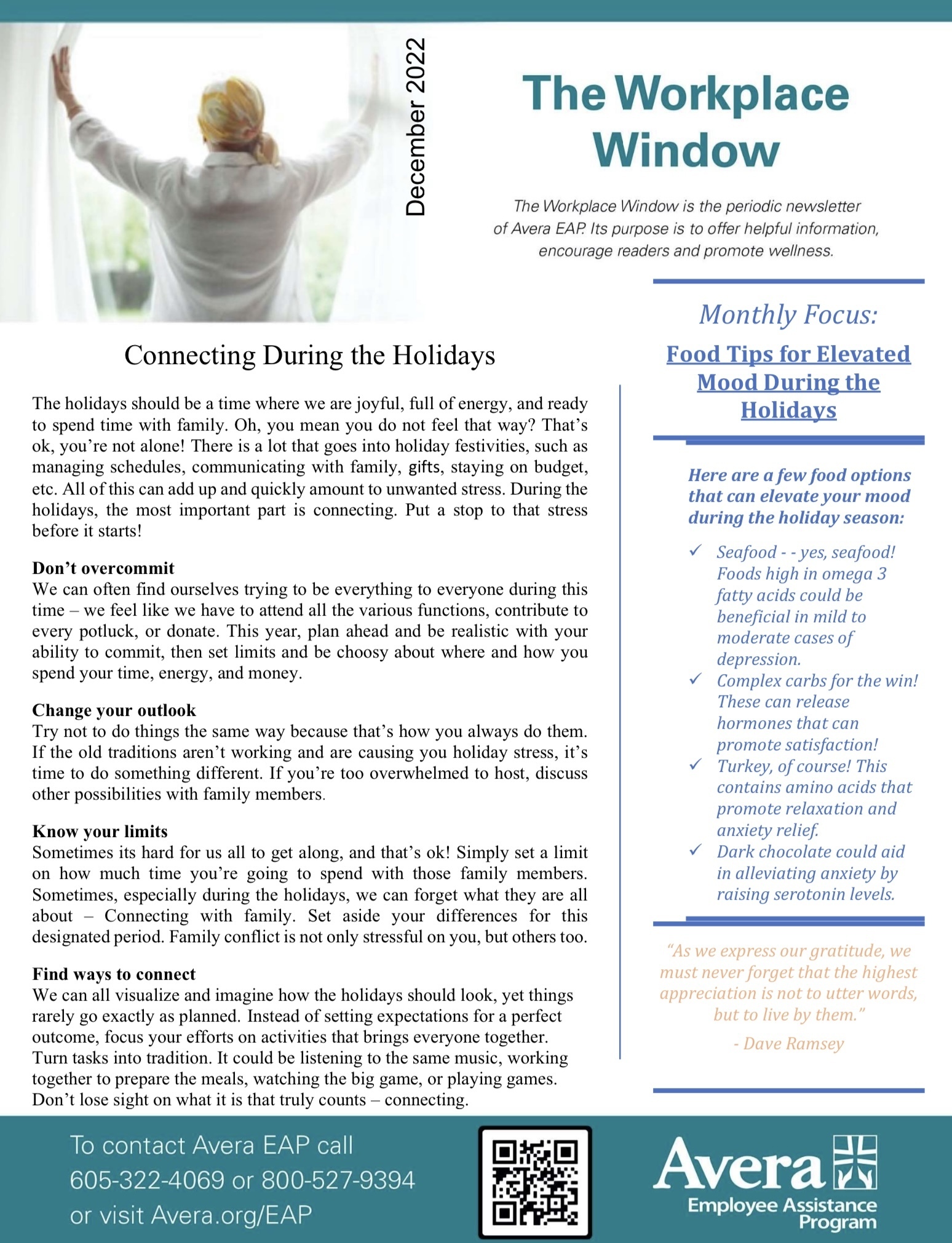 The following information is from Avera Employee Assistance Program. All content is provided by Avera Employee Assistance Program and our CHS Human Resources Department.