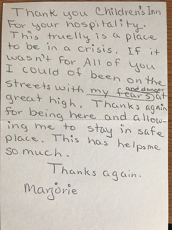 “My mom and 5 siblings had a stay at Children’s Inn back in 2001. I can’t tell you enough how much it meant to me to be looked after and to be distracted from everything going on with my parents as a 12-year-old boy. Also, I got hooked on Harry Potter there when I read the third book. I remember playing in the backyard, and whining until I got to play Oregon Trail in the teen room, being taken to my first soccer game (go Spitfire!), and melting down used crayons to make fun-shaped crayons. I also recall watching a lot of Veggie Tales while we were there. I believe there were also a couple of toddlers/infants. I remember playing with them, as well. It was the best part of that bad situation.”